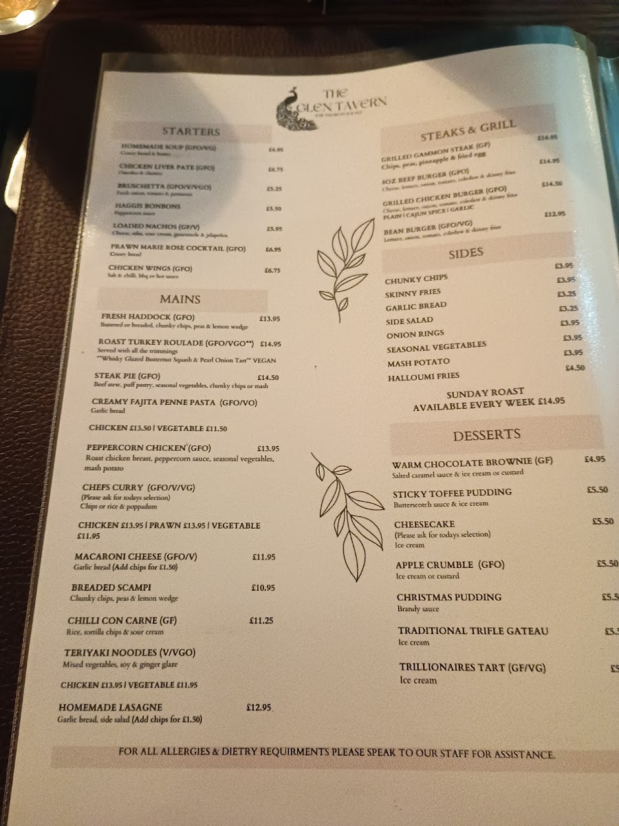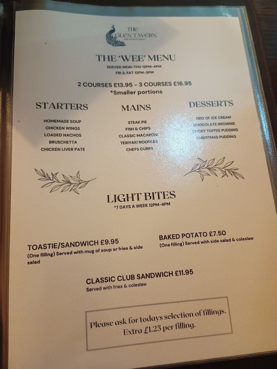 Service at The Glen Tavern is consistently swift and attentive, creating a seamless dining experience. Whether enjoying a three-course meal or sampling from the "Wee Menu," diners find that prices remain reasonable without compromising on taste or portion size. The establishment's inviting, pub-style ambiance adds to its charm, making it an ideal spot for family gatherings, casual dates, or quick lunches.